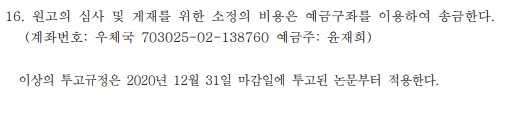 논문 투고 후 심사비를 윤재희 선생님 계좌로 입급하였습니다.