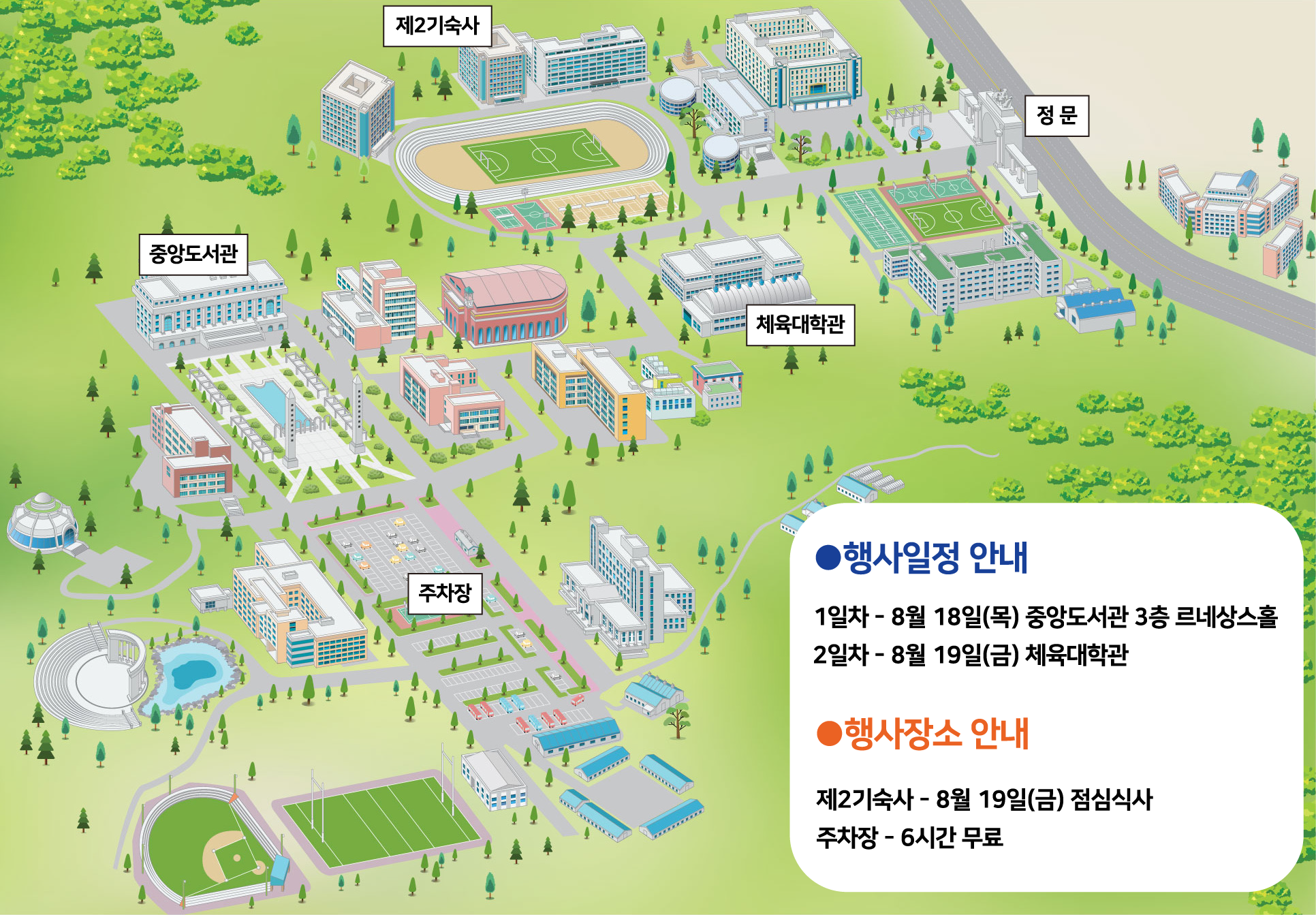 장소 : 1일차 (18일) 한국체육학회 : 경희대학교 글로벌 캠퍼스 중앙도서관 3층 르네상스홀 ( 경기도 용인시 기흥구 덕영대로 1732) 에서 진행되며,