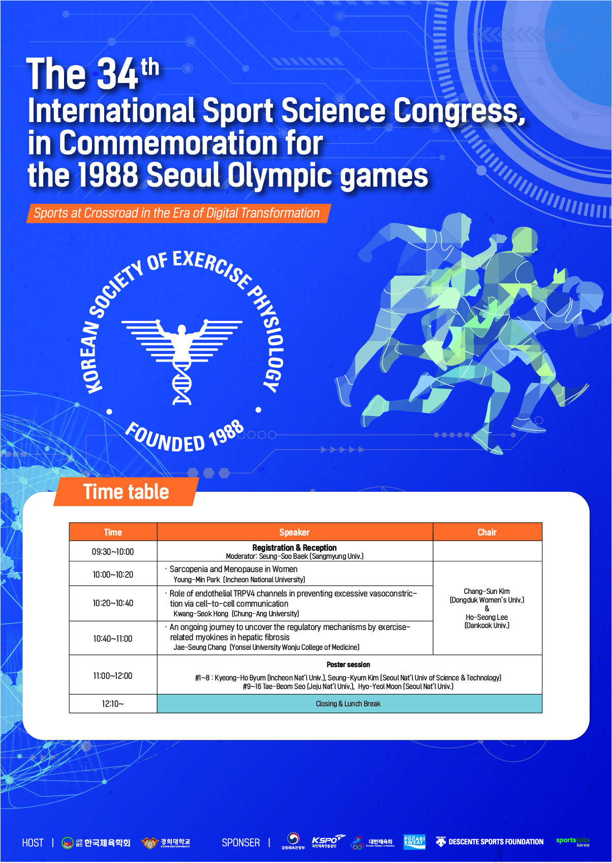 제34회 88서울올림픽 기념 국제 스포츠 컨퍼런스 한국운동생리학회 발표 일정 안내