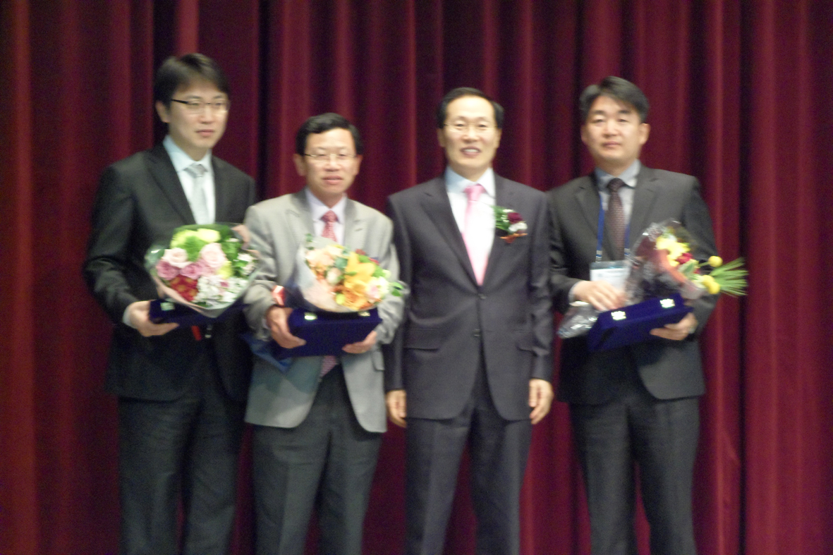 우수논문상 수상자 충북대학교 이장희교수, 중앙대학교 정도진교수, 충북대학교 배기수교수