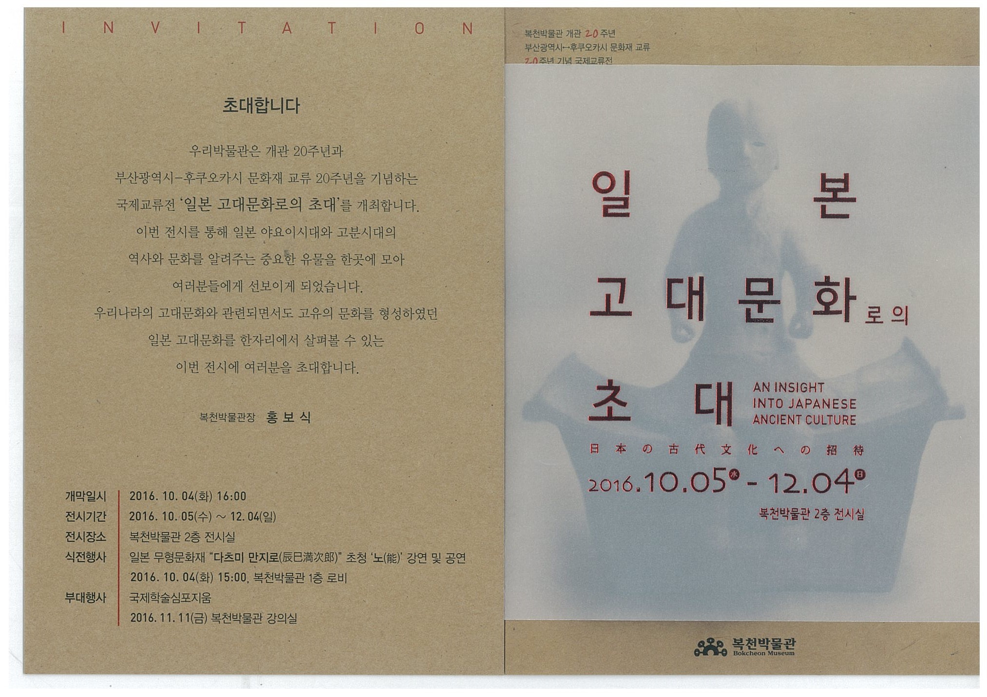 복천박물관 2016년 국제교류전 <일본 고대문화로의 초대> 개최 안내