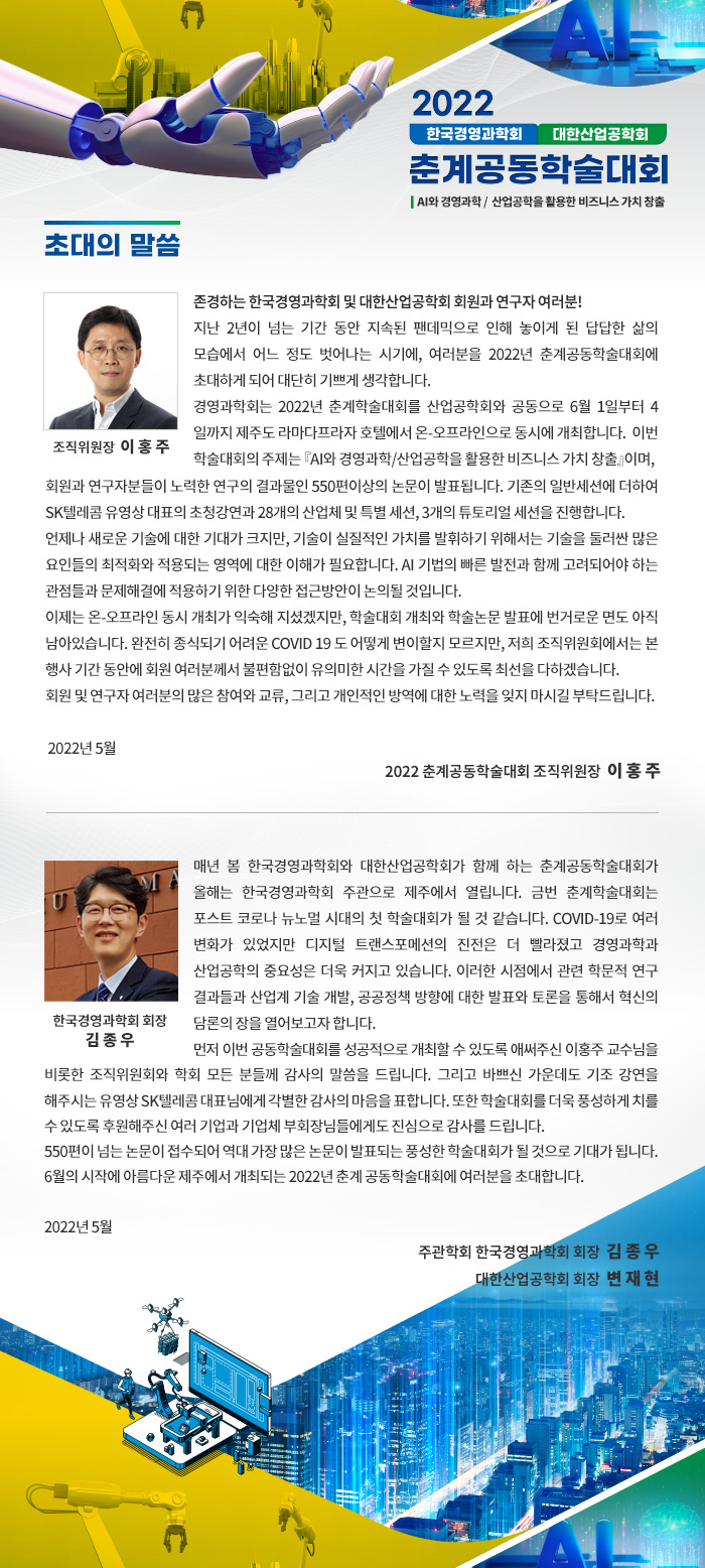 2022 춘계공동학술대회 프로그램 및 발표 일정 안내