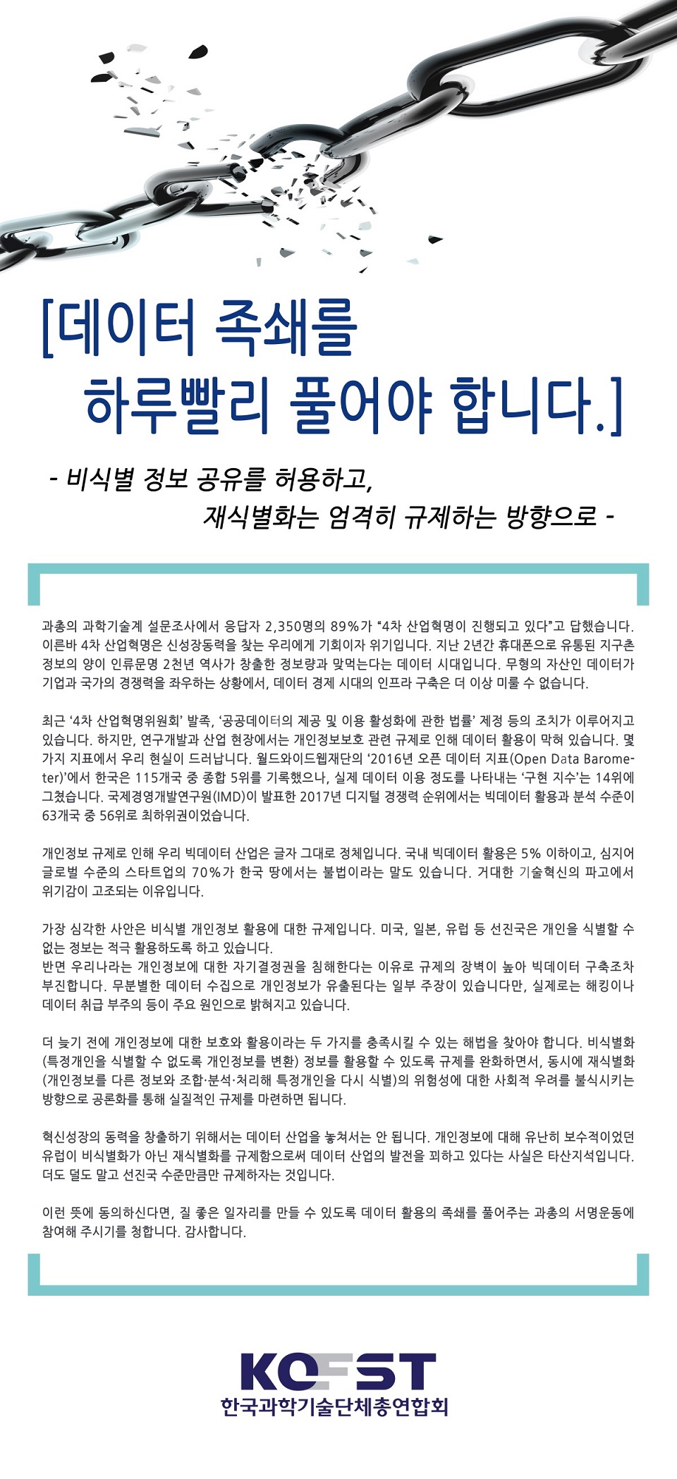 [과총] 비식별 개인정보 활용을 위한 규제완화 서명운동