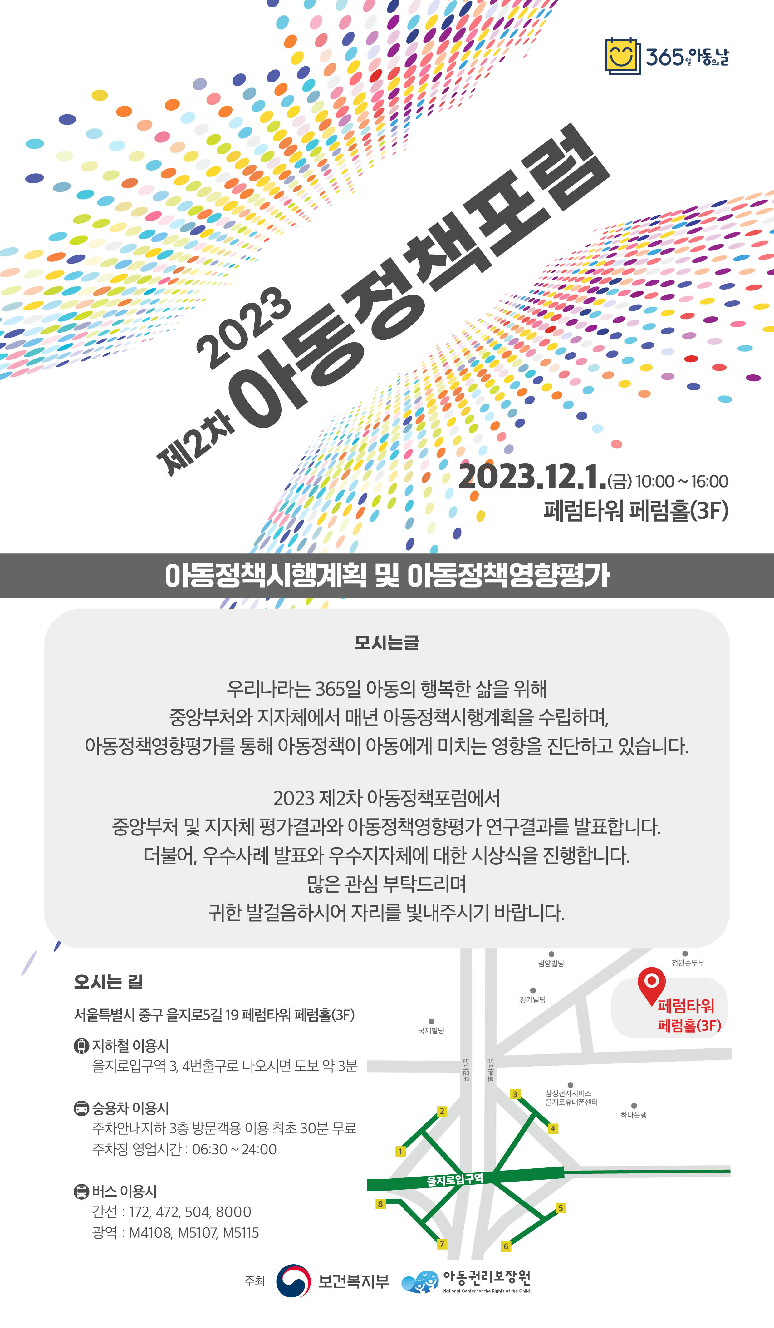 한 해의 결실을 맺는 12월, 아동권리보장원에서 2023 제2차 아동정책포럼을 개최합니다.