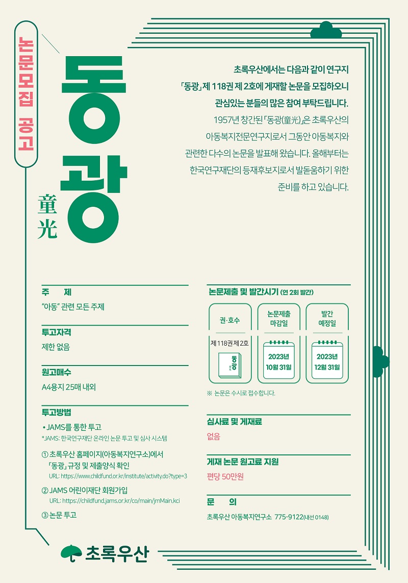 [초록우산 어린이재단] 동광 제118권 제2호 논문 모집 안내