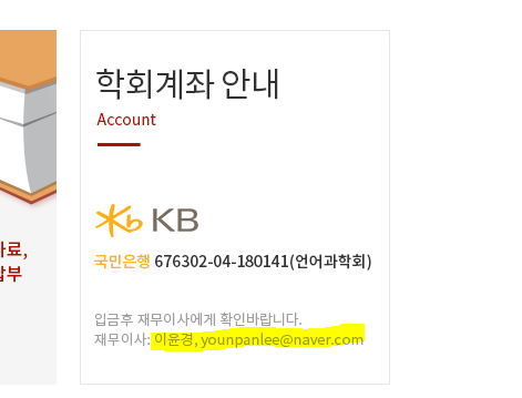 학회 통장 : 국민은행 676302-04-180141 언어과학회