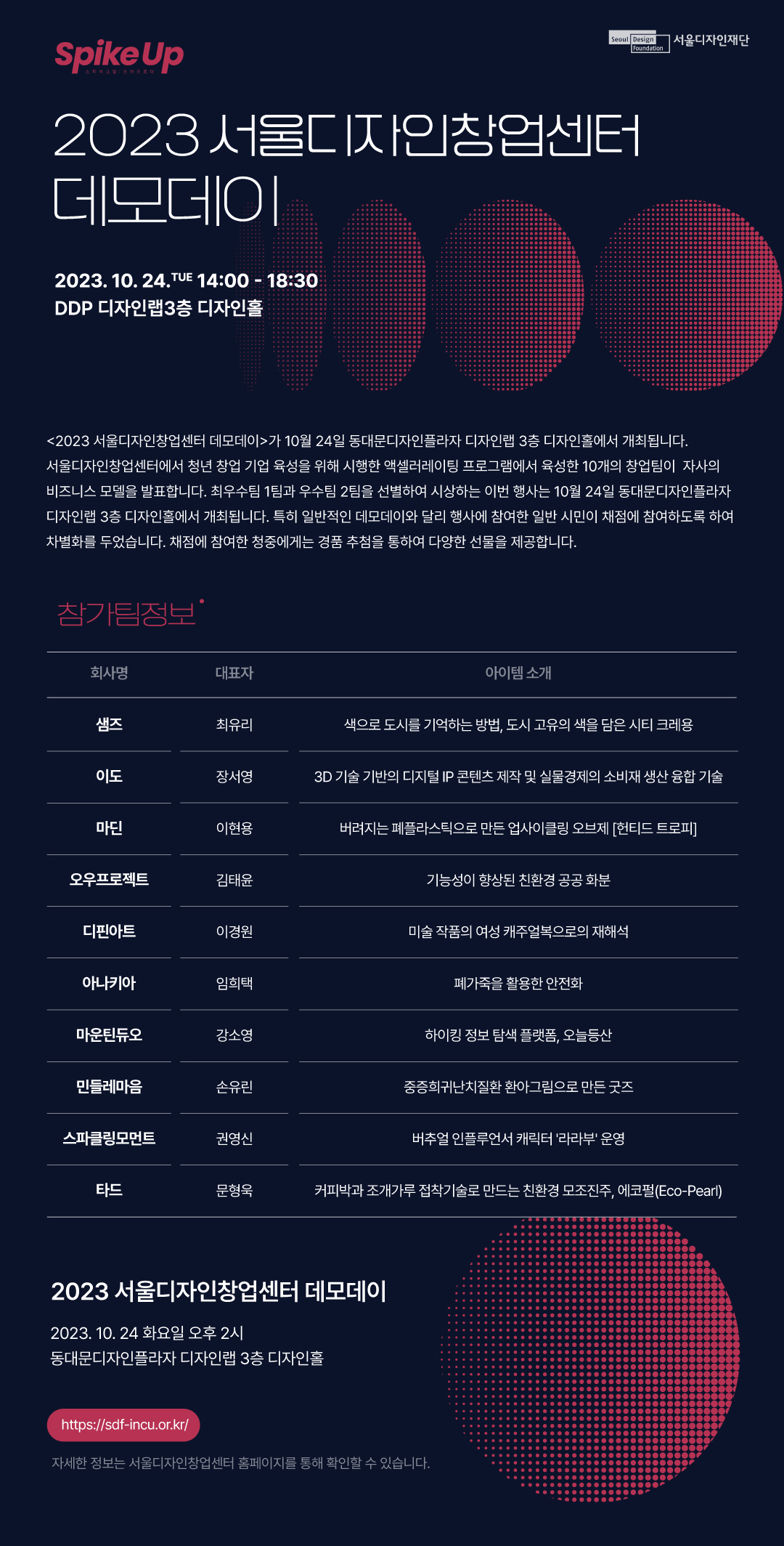 [서울디자인재단] 2023 서울디자인창업센터 데모데이