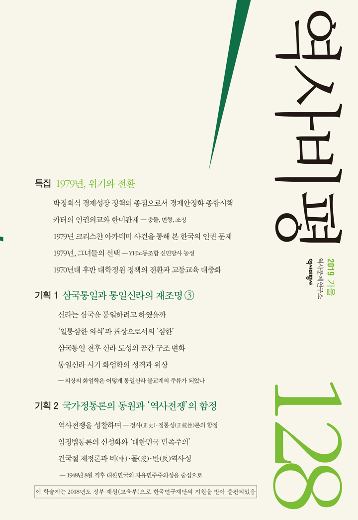 이번호 특집은《1979년, 위기와 전환》이다. 일부에서는 한국 현대사를 끊임없는 성장의 시대와 문명화의 과정으로 서술하고 싶어 하지만, 현실에 그런 성공신화가 있을 리 없다. 1970년대 한국 사회는 정치, 외교, 사회, 문화적으로 심각한 위기에 놓여 있었고 변화가 불가피한 상황이었다. 박태균은 1979년 박정희 정권의 성장 중심 경제 정책이 심각한 위기 속에서 ‘경제 안정화 종합시책’을 통한 전환을 시도했다가 실패하는 과정을 그려내고, 그 역사적 의미를 살폈다. 박정희 정권의 위기는 국제적 변화와 국내 정치와 사회적 저항이 교차하는 와중에 더욱 강화되었다. 카터 외교와 한미관계를 다룬 박원곤의 논문, 크리스챤 아카데미 사건을 다룬 이상록의 논문을 교차해서 읽어보는 것도 흥미로운 일이다. YH노동조합의 신민당사 농성을 다룬 김원의 논문은 여성 노동자의 시각에서 당시를 세심하고 두터운 서술로 재구성하고 있다. 오제연은 1970년대 대학정원의 증가가 일관된 교육 정책의 기조에서 나온 것이 아니라 사회적 변화의 압력을 받아 진행되었고, 고등교육의 대중화 또한 혼란스럽게 진행될 수밖에 없었음을 밝혔다.
