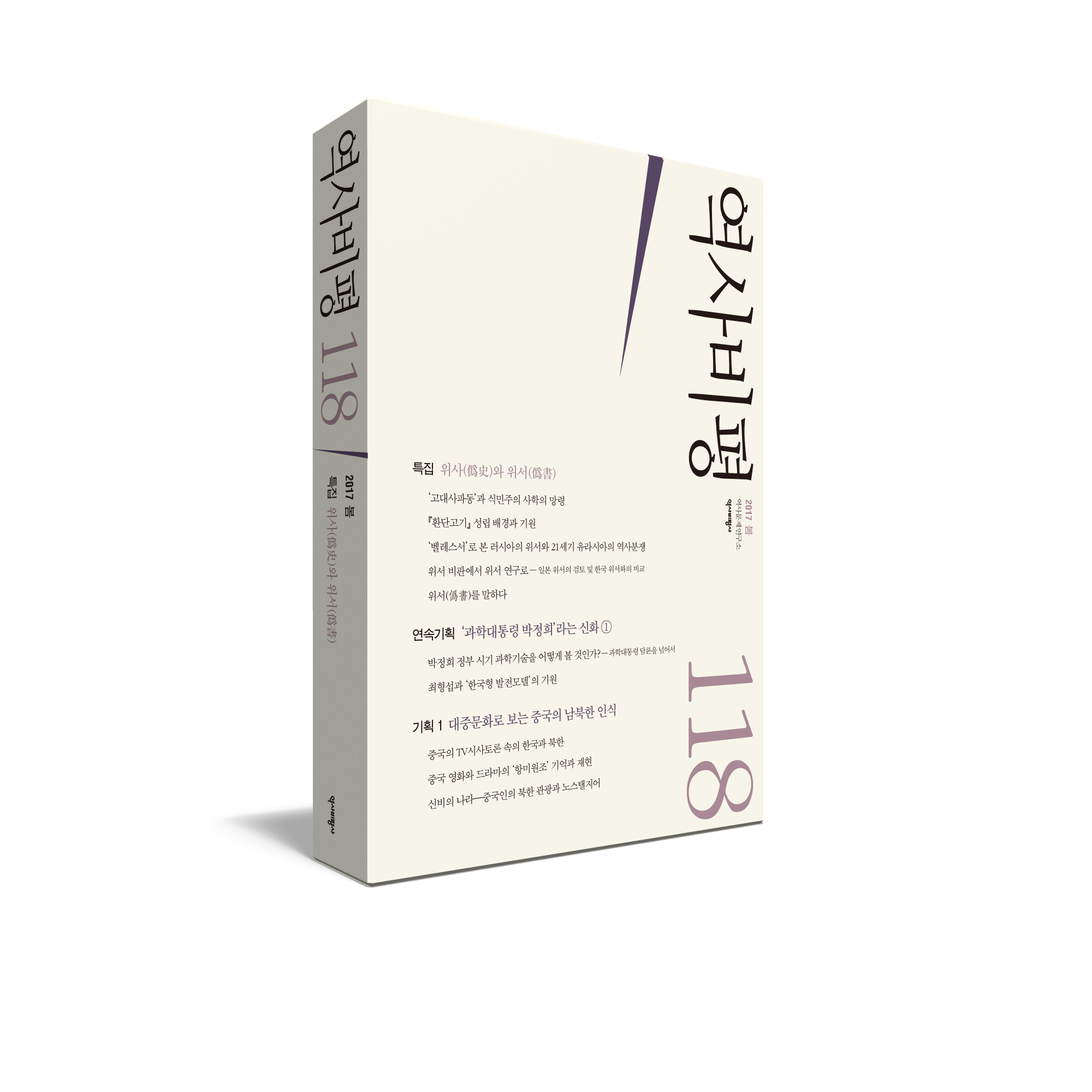 「역사비평」 118호 2017년 봄호. 이번호 특집은 '위사(僞史)와 위서(僞書)'이다. 지난 2016년 1년 동안 계속된 고대사 기획의 연장선상에 있으면서도 다른 시각으로 자료와 담론의 문제를 바라보고자 했다. 한국의 고대사 관련 논란에 근거로 사용되고 있는 거짓으로 만들어진 사료들뿐만 아니라 일본과 러시아에서도 나타나는 비슷한 류의 사료들을 분석했다. 그리고 그러한 사료들이 거짓 역사를 만들어내는 데 어떠한 역할을 했으며, 거짓 역사는 현실에서 어떻게 작동하고 있는지 방식을 분석하였다.