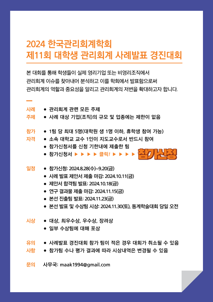 2024 제11회 대학생 관리회계 사례발표 경진대회