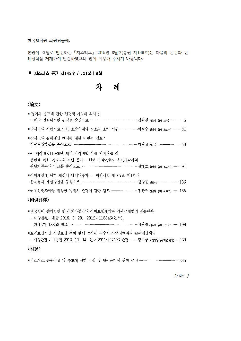 <저스티스 통권 제150호 간행>