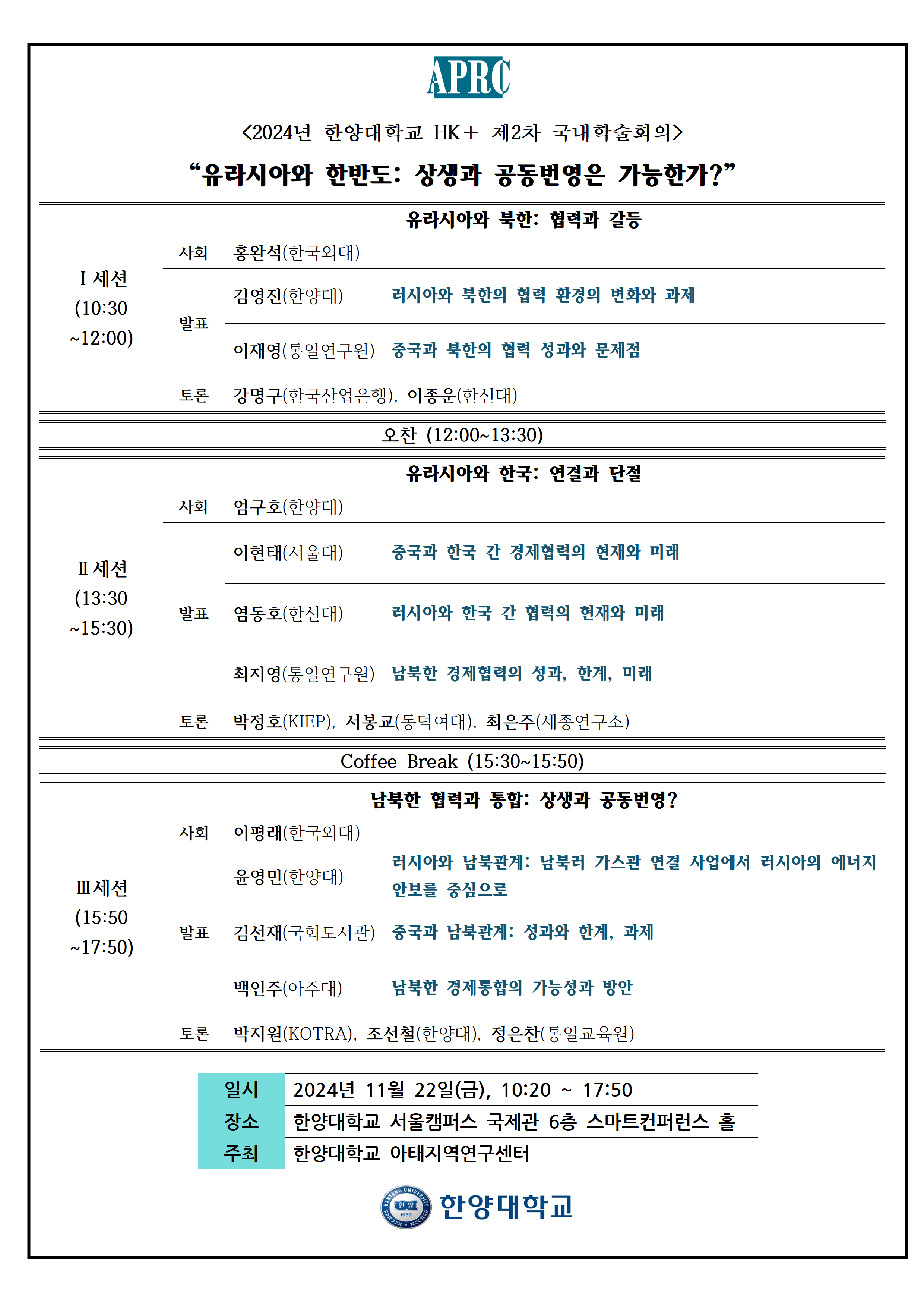 [공지] 2024년 한양대학교 HK+ 제 2차 국내학술회의: 유라시아와 한반도: 상생과 공동번영은 가능한가?