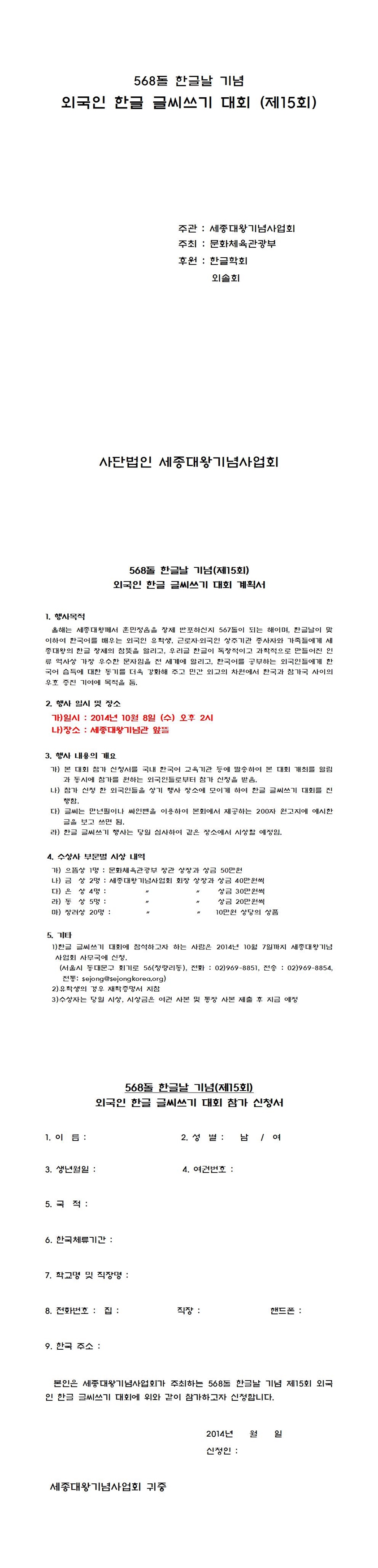 링크1: http://www.sejongkorea.org/bbs/tb.php/notice/104/6f3728fb6fc1de6cd4dd75383c99dd4b 외국인들의 많은 참여부탁드립니다