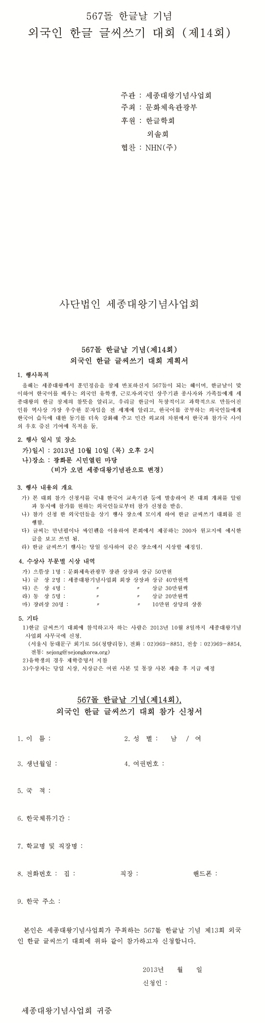 제21회 한글글꼴디자인 공모전 계획서 및 참가신청서