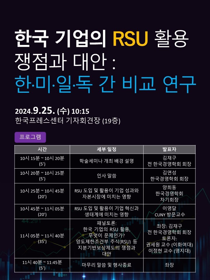 [한국경영학회] 한국 기업의 RSU 활용 쟁점과 대안: 한·미·일·독 간 비교 연구 학술세미나 발표자료
