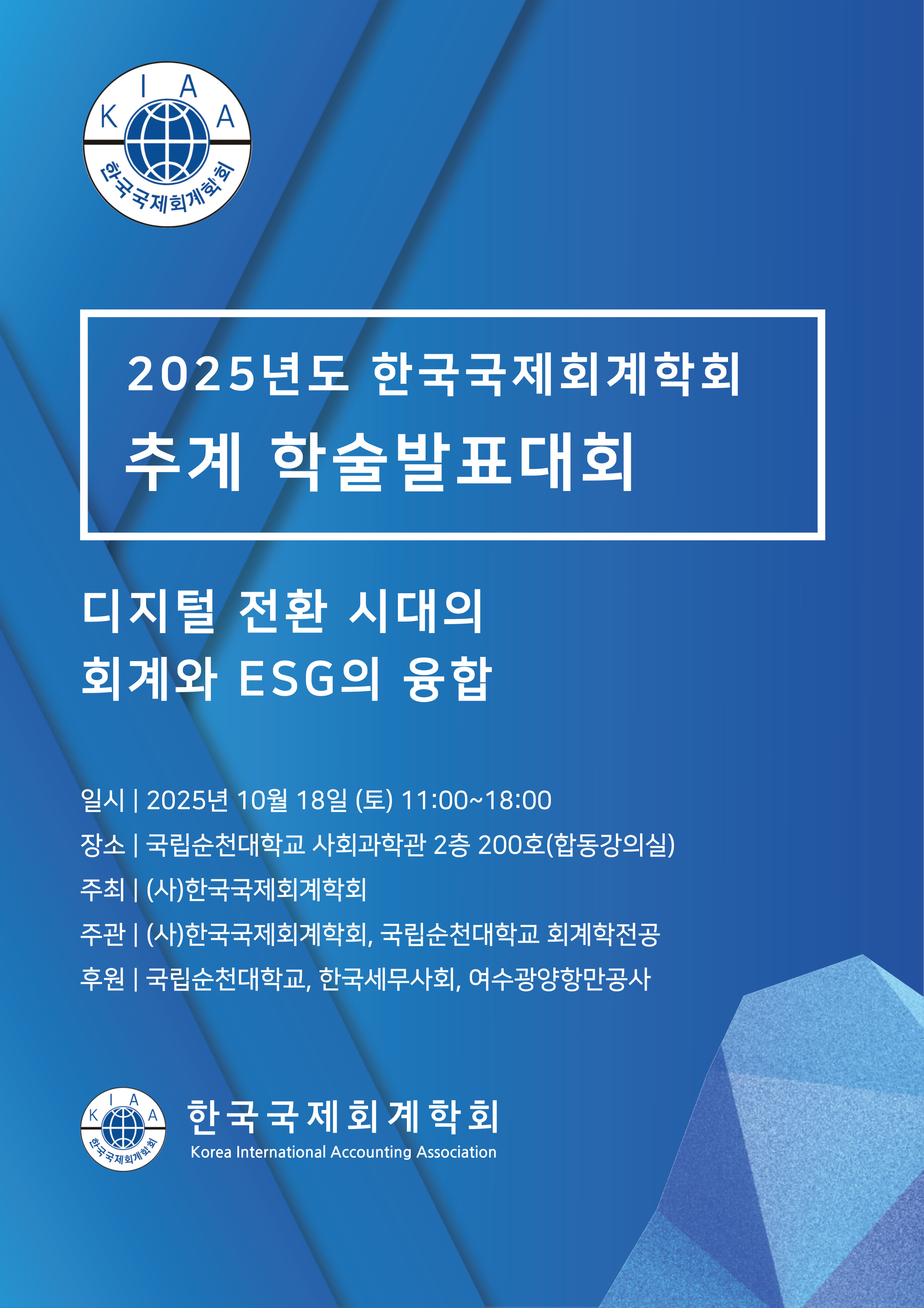 한국국제회계학회 추계 학술발표대회를 10월 18일(토)에 국립순천대학교에서 개최