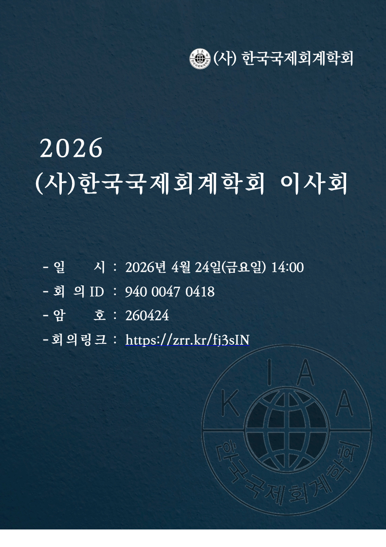 2026년 (사)한국국제회계학회 이사회를 아래와 같이 개최하고자 하오니