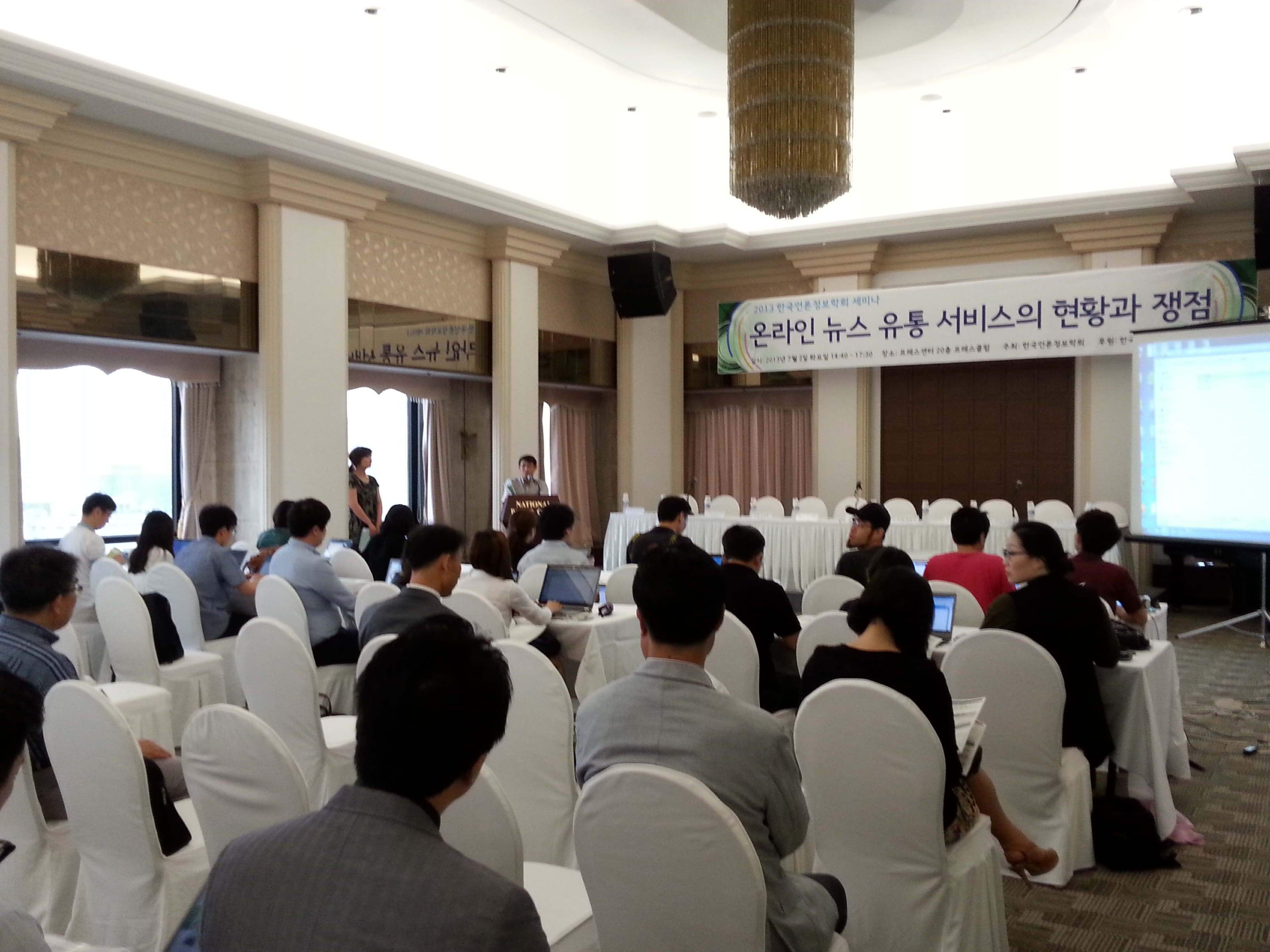 ‘온라인 뉴스 유통 서비스의 현황과 쟁점’ 세미나 일시: 2013년 7월 2일 화요일 14:40 - 17:30 장소: 프레스센터 20층 프레스클럽 주최: 한국언론정보학회 후원: 한국언론진흥재단