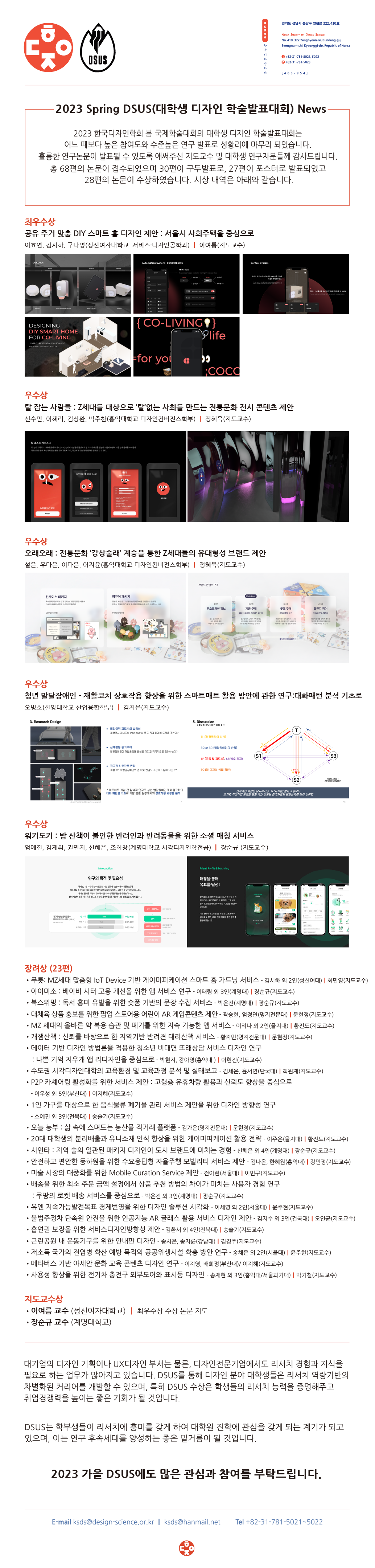 2023 SPRING DSUS(대학생 디자인 학술발표대회) News