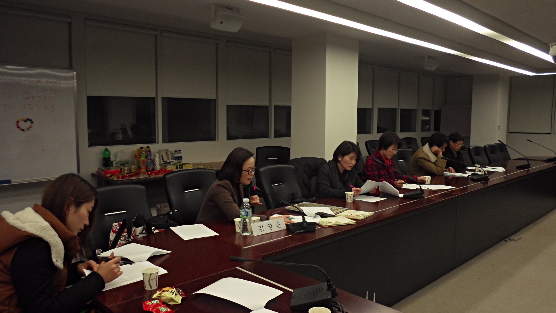 2013년 12월 27일 금요일 오후 6시, 세교 연구소에서 12월 정기 연구발표회를 가졌습니다. 이번 연구발표회에서는 김영순 선생님과 양윤정 선생님께서 논문을 발표하셨습니다. 매우 추운 날이었는데도 발걸음을 해주신 선생님들께 감사의 말씀을 전합니다.