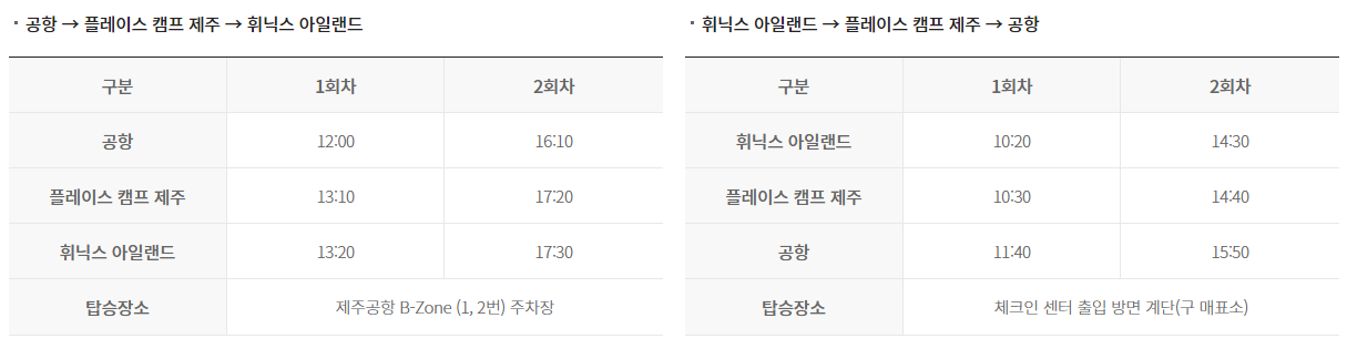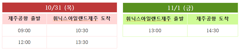 휘닉스아일랜드 출발 :  10:20 / 14:30
