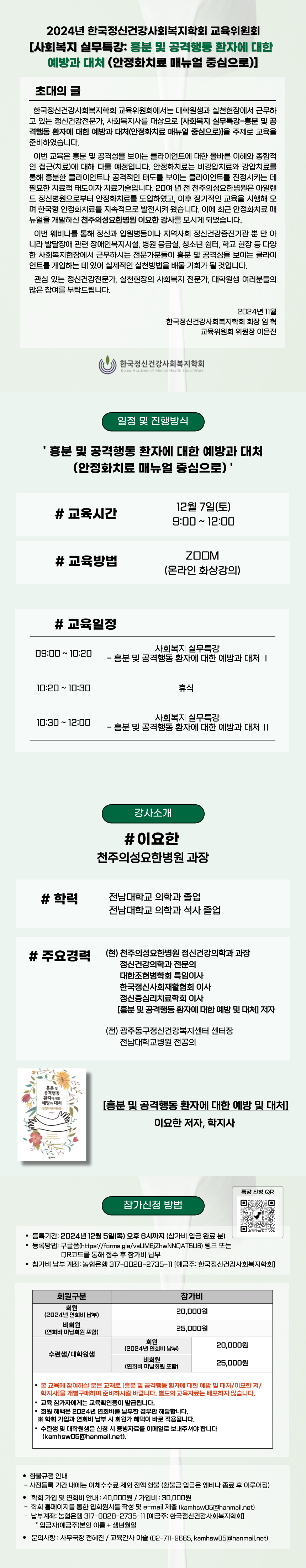[한국정신건강사회복지학회] 사회복지 실무특강: 흥분 및 공격행동 환자에 대한 예방과 대처(안정화치료 매뉴얼 중심으로) 웨비나 안내
