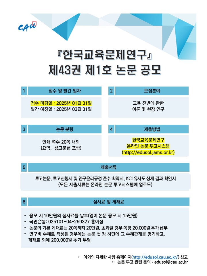 2025년 『한국교육문제연구』 제43권 제1호 게재 논문 공모 안내