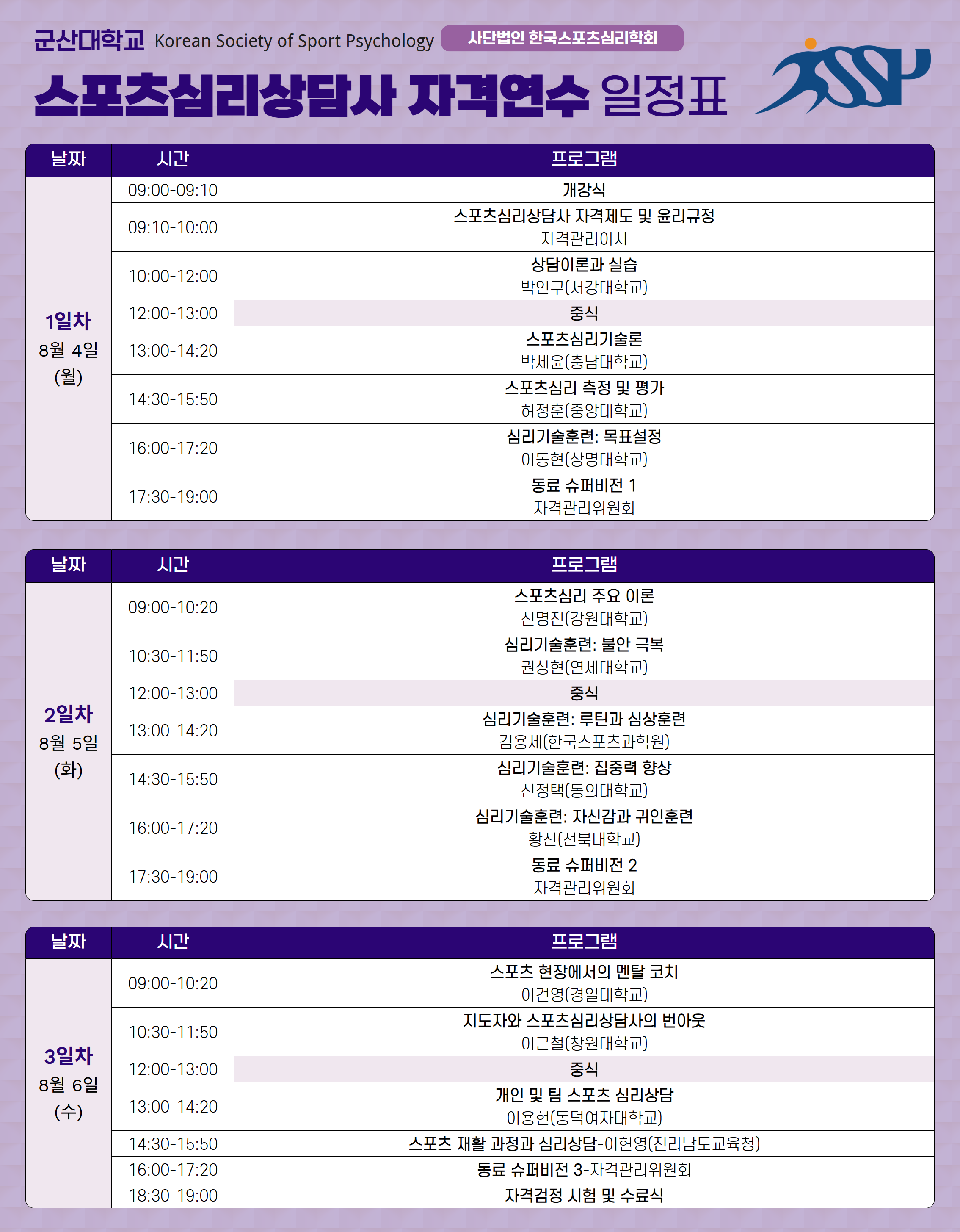 2) 연수 기간: 2025년 8월 4일 (월) ~ 8월 6일 (수)