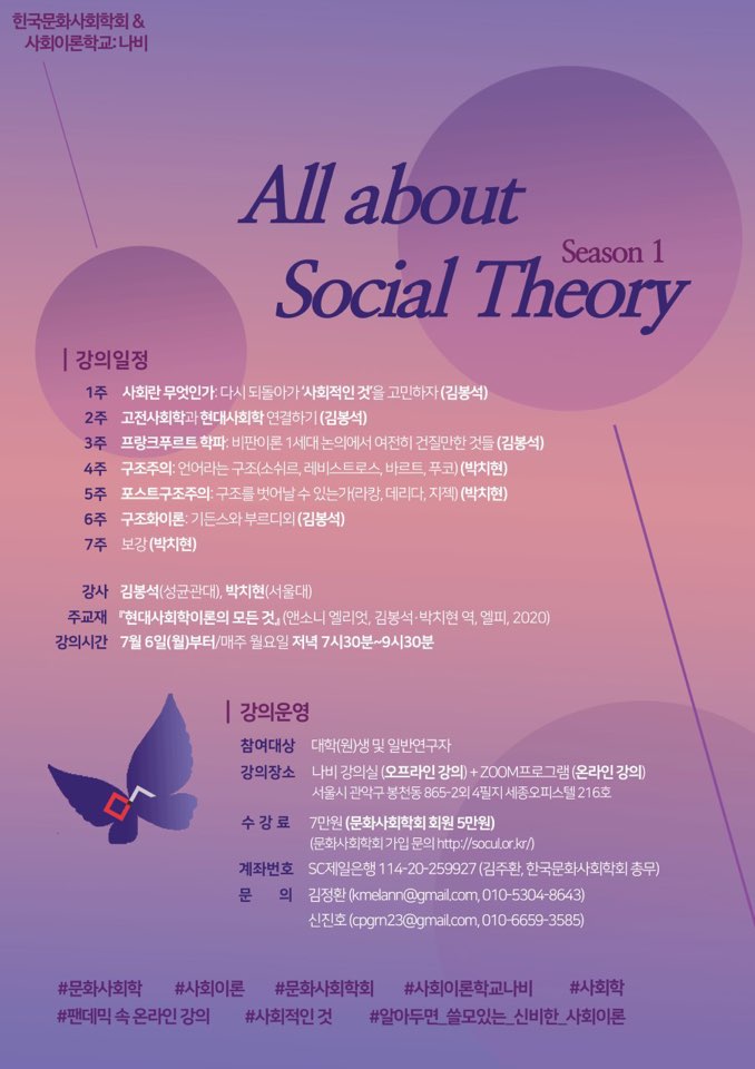 <한국문화사회학회> 및 <사회이론학교:나비> 공동기획 사회이론강좌