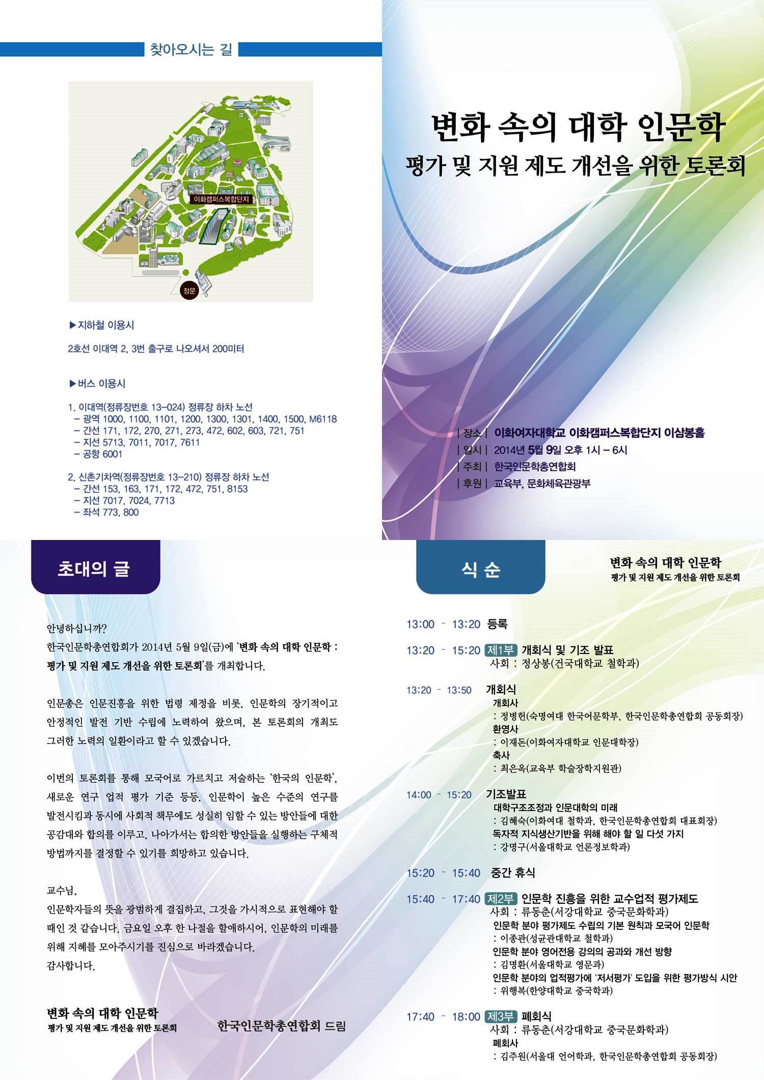 한국인문학총연합회 주최 <변화 속의 대학 인문학 : 평가 및 지원제도 개선을 위한 토론회> 안내