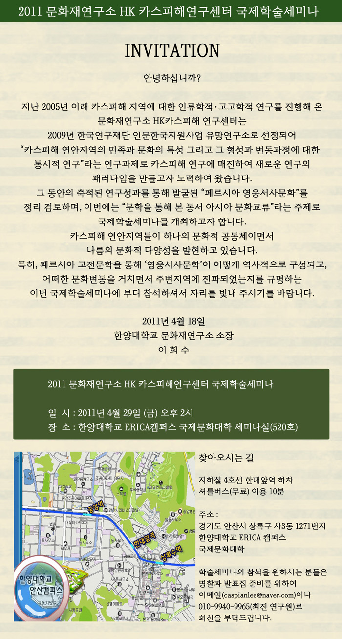 [한양대학교 HK 카스피해연구센터] 국제학술세미나 안내